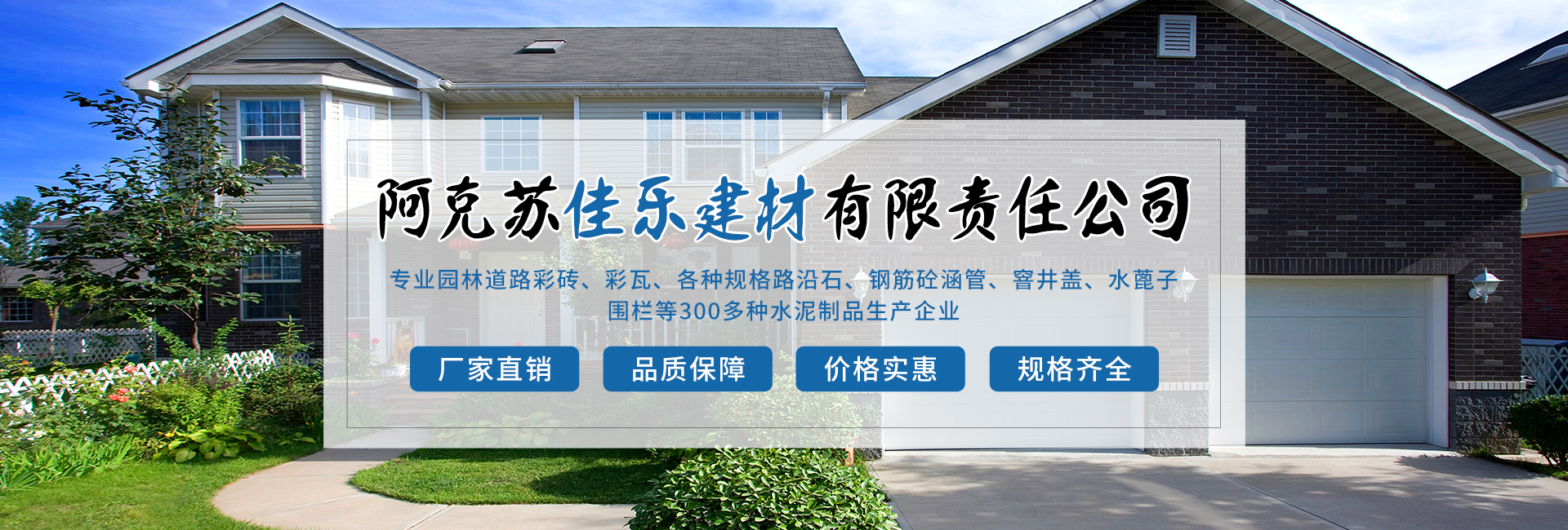 阿克蘇佳樂建材有限責(zé)任公司成立于2005年,是園林道路彩磚、彩瓦、各種規(guī)格路沿石、鋼筋砼涵管、窨井蓋、水蓖子、圍欄等300多種水泥制品生產(chǎn)企業(yè)。阿克蘇佳樂建材有限責(zé)任公司位于阿克蘇市塔南路13號(石油公司往南200米)。現(xiàn)公司在阿克蘇市、阿瓦提縣、烏什縣、拜城縣、輪臺縣、焉耆縣等地有分廠十余個(gè),為地方城鄉(xiāng)建設(shè)添磚加瓦。 多年來,公司致力于設(shè)備的更新,新產(chǎn)品的研制,用更科學(xué)更美觀的產(chǎn)品順應(yīng)...